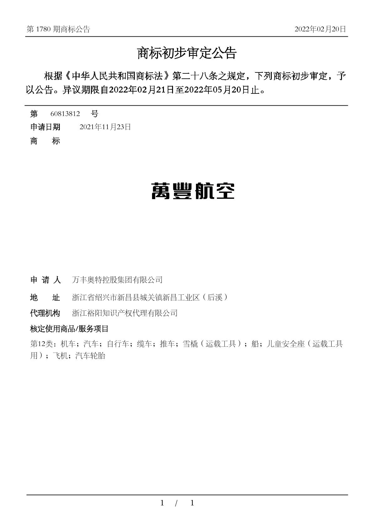 【万丰航空】商标详情
