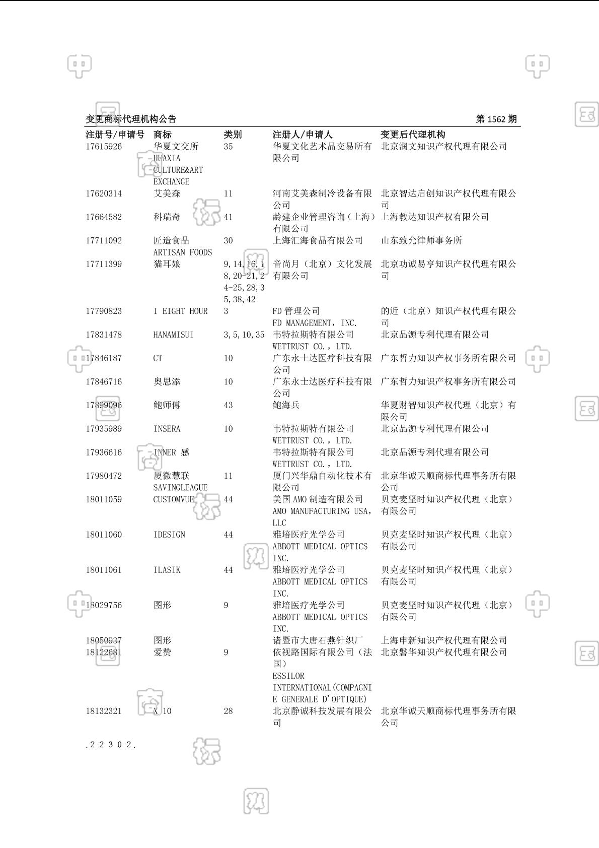 变更商标代理机构公告 2017-08-06 第1562期 查看公告