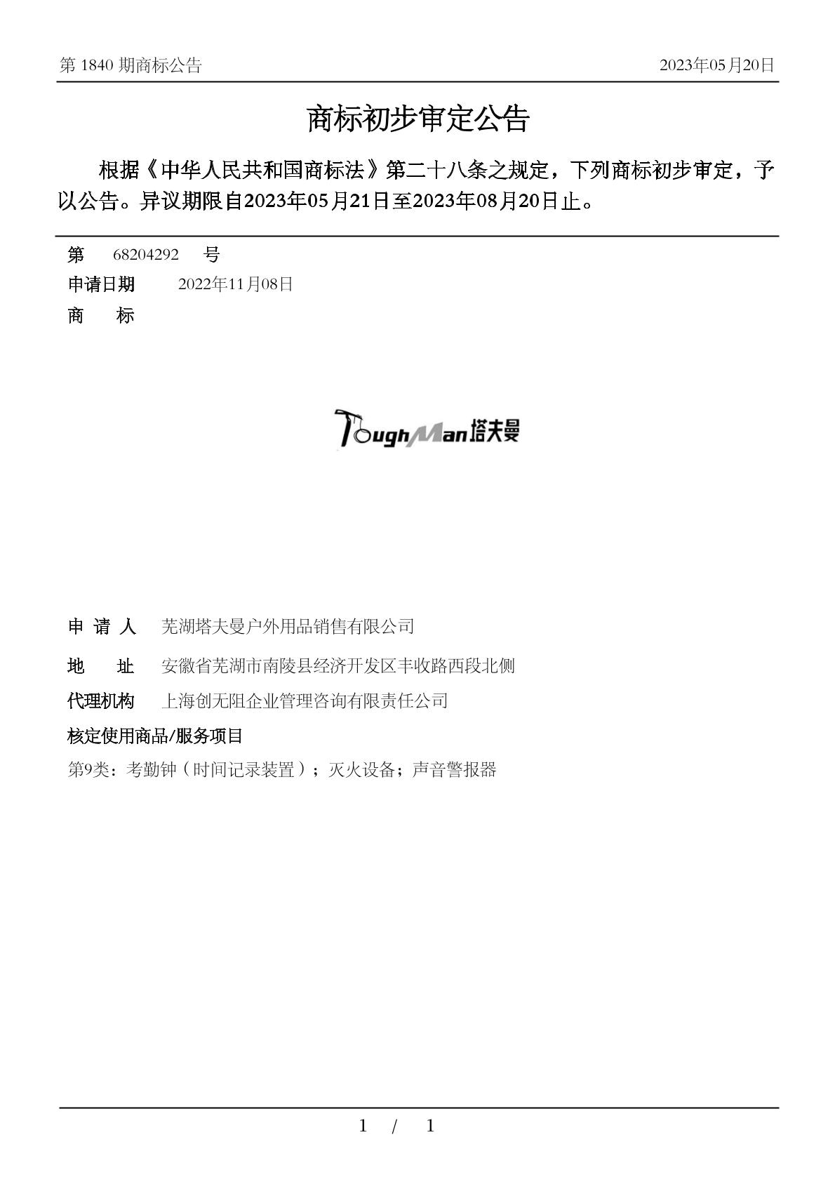 【TOUGHMAN 塔夫曼】商标详情