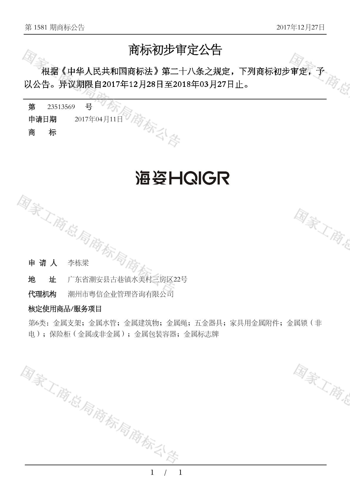 0601-金属支架;0602-金属水管;0603-金属建筑物;0605-金属绳;0607-五金器具;0608-五金器具;0608-家具用金属附件;0609-五金器具;0610-金属锁(非电);0611-保险柜(金属或非金属);0613-金属包装容器;0614-金属标志牌 - 1581