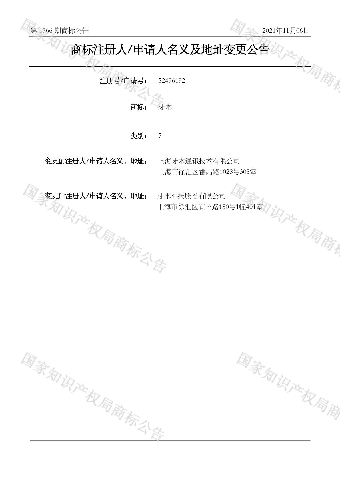 2021-10-25 变更商标申请人/注册人名义/地址 | 申请收文