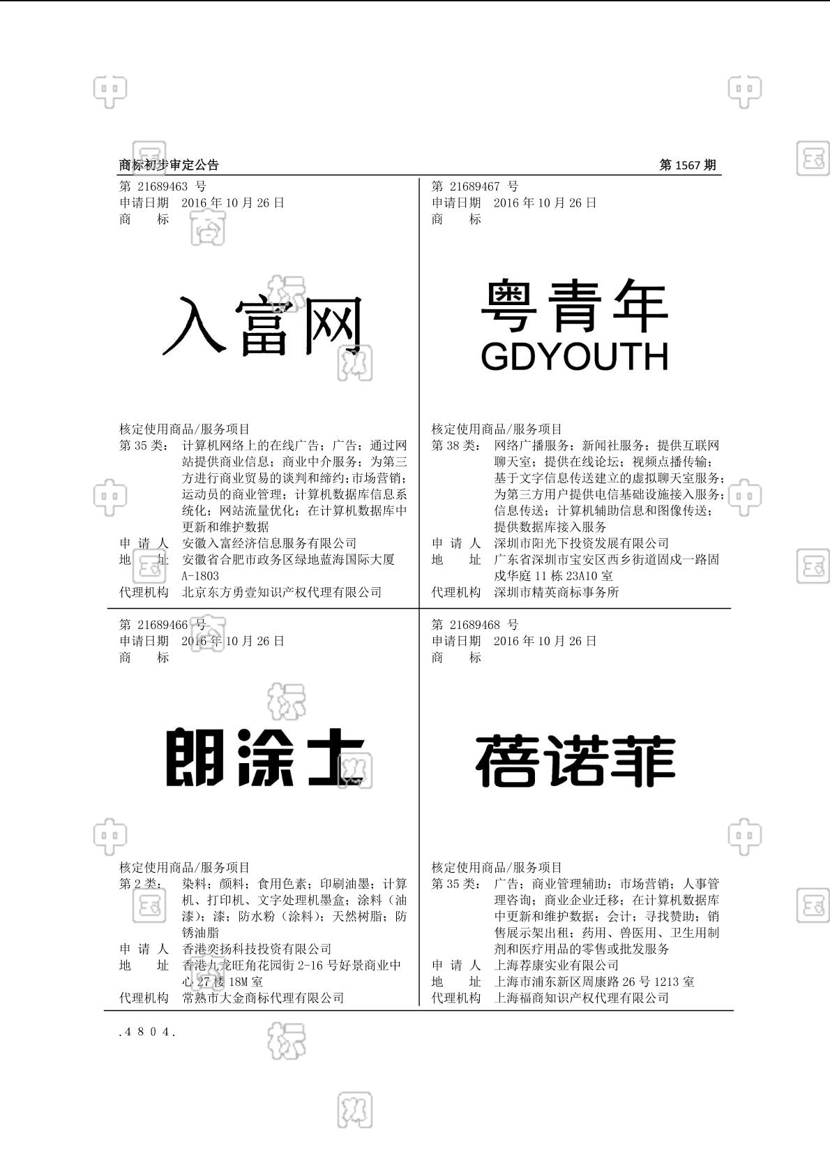 2016-10-26 商标注册申请 | 申请收文