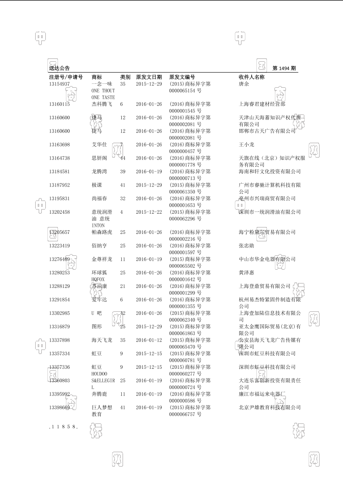 2016-03-06 商标异议申请 | 排版送达公告