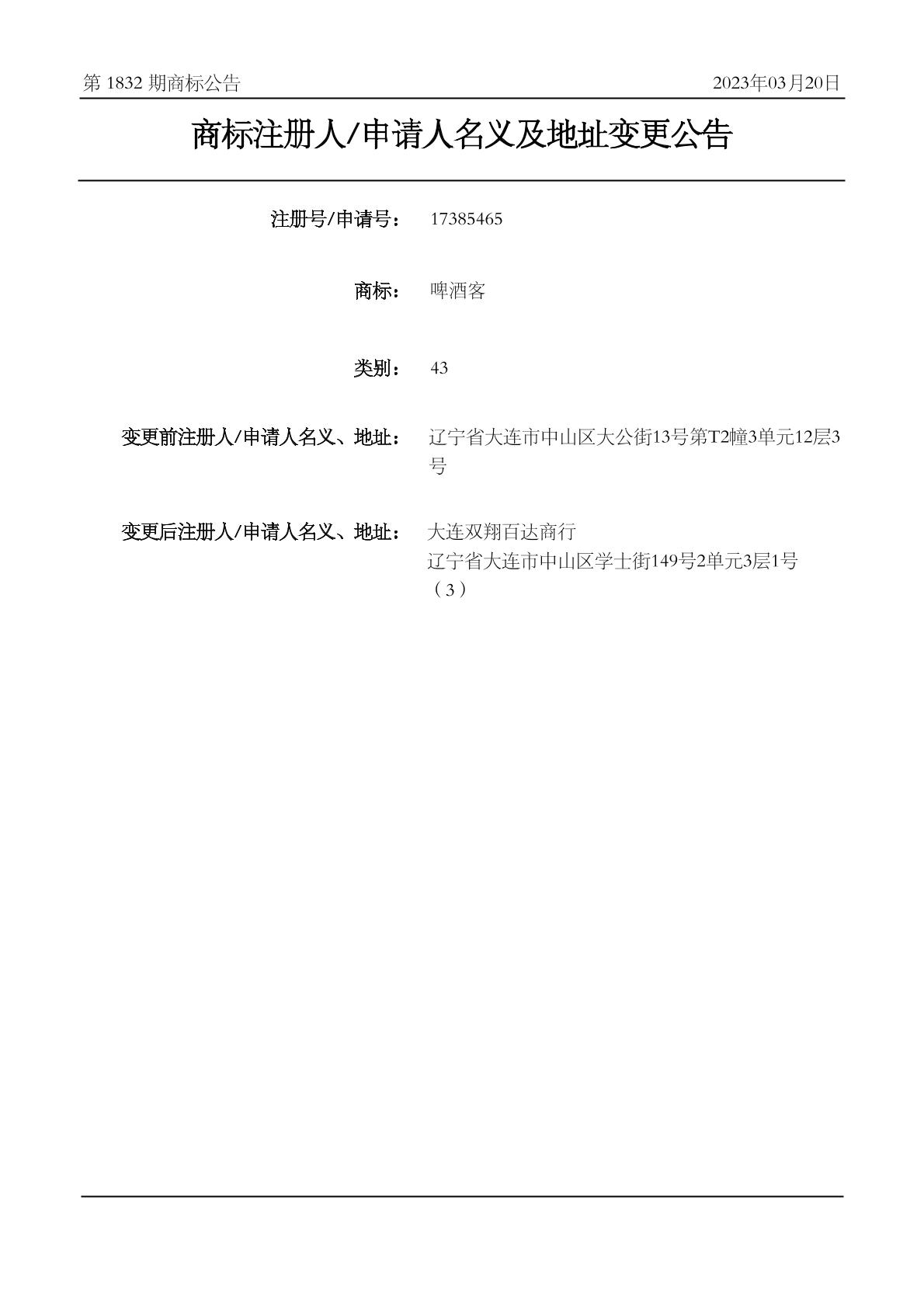 2023-03-14 变更商标申请人/注册人名义/地址 | 核准证明打印发送