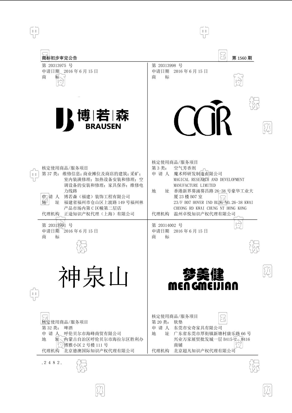 2016-10-30 商标注册申请 | 等待受理通知书发文