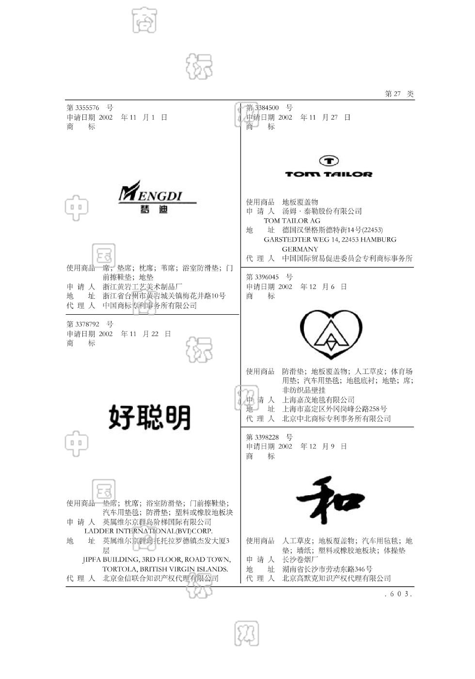 2702-席;2703-人工草皮;2703-体育场用垫;2703-地垫;2703-地板覆盖物;2703-地毯底衬;2703-汽车用垫毯;2703-防滑垫;2704-非纺织品壁挂 - 933