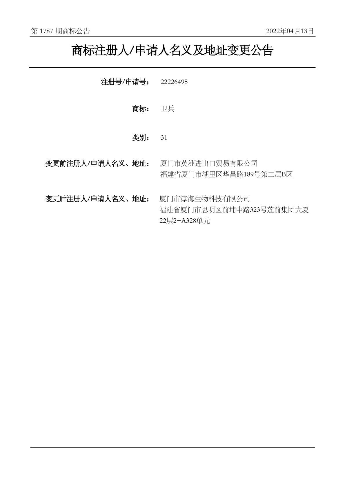 2022-04-01 变更商标申请人/注册人名义/地址 | 核准证明打印发送