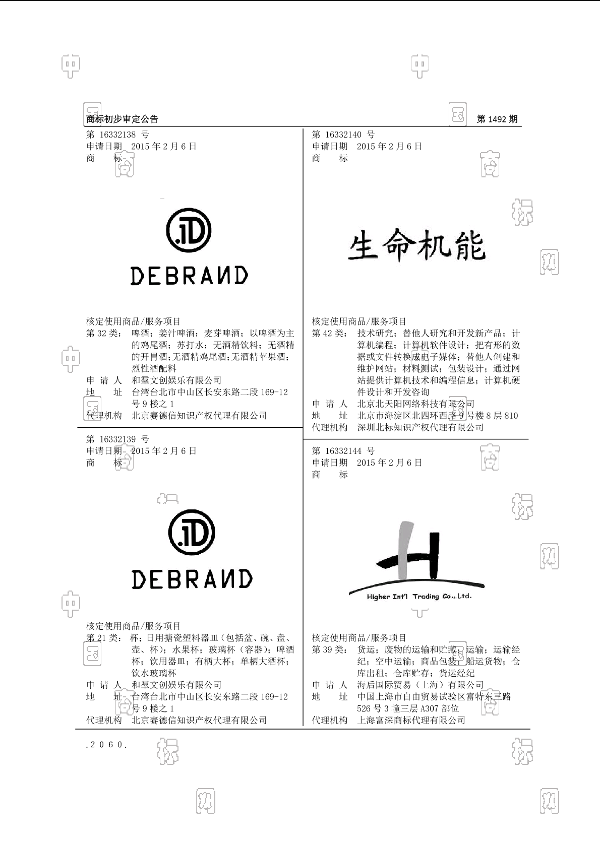 3201-以啤酒为主的鸡尾酒;3201-啤酒;3201-姜汁啤酒;3201-麦芽啤酒;3202-无酒精的开胃酒;3202-无酒精苹果酒;3202-无酒精饮料;3202-无酒精鸡尾酒;3202-苏打水;3203-烈性酒配料 - 1492
