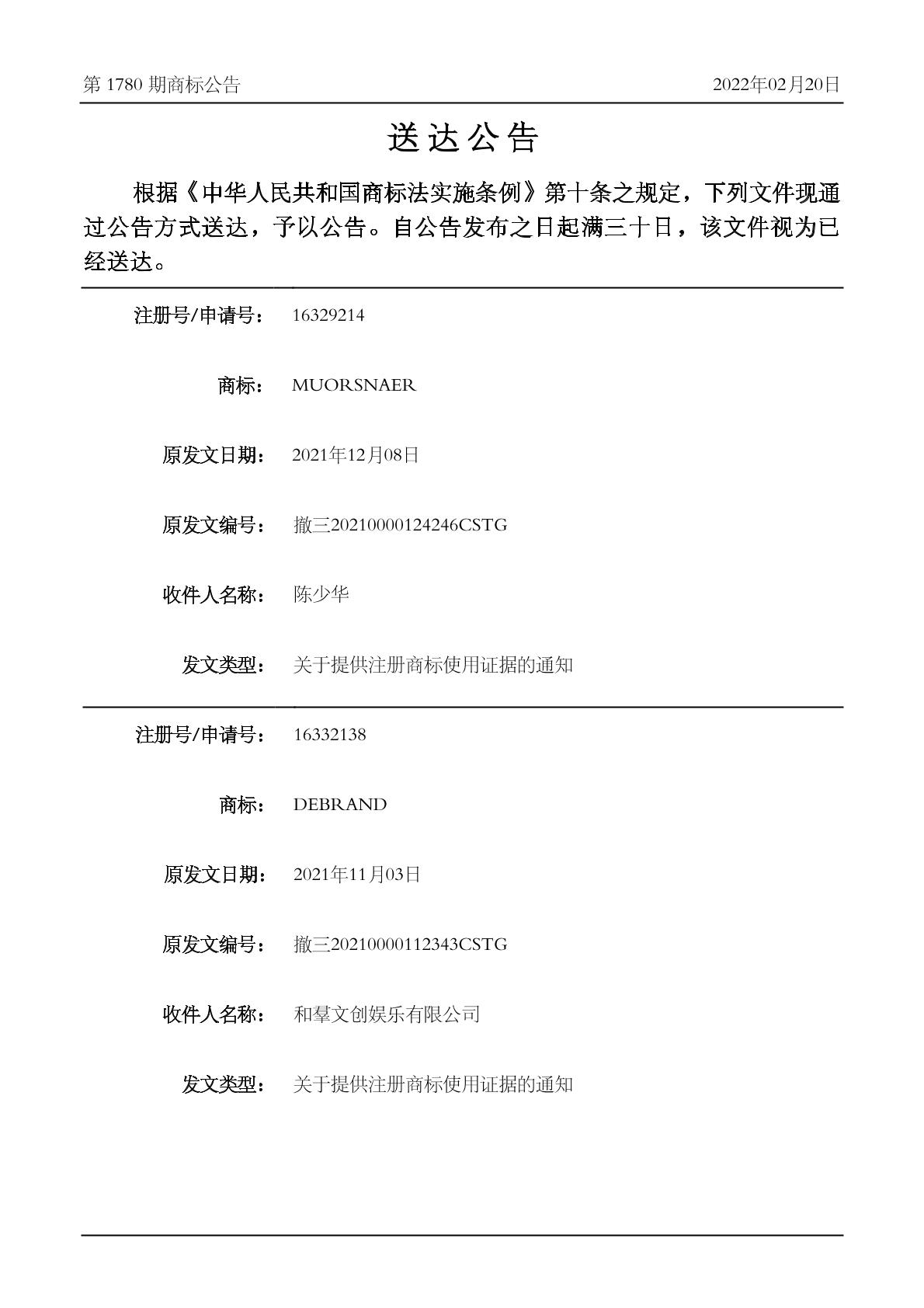 2022-02-22 撤销连续三年停止使用注册商标 | 排版送达公告(无退信)