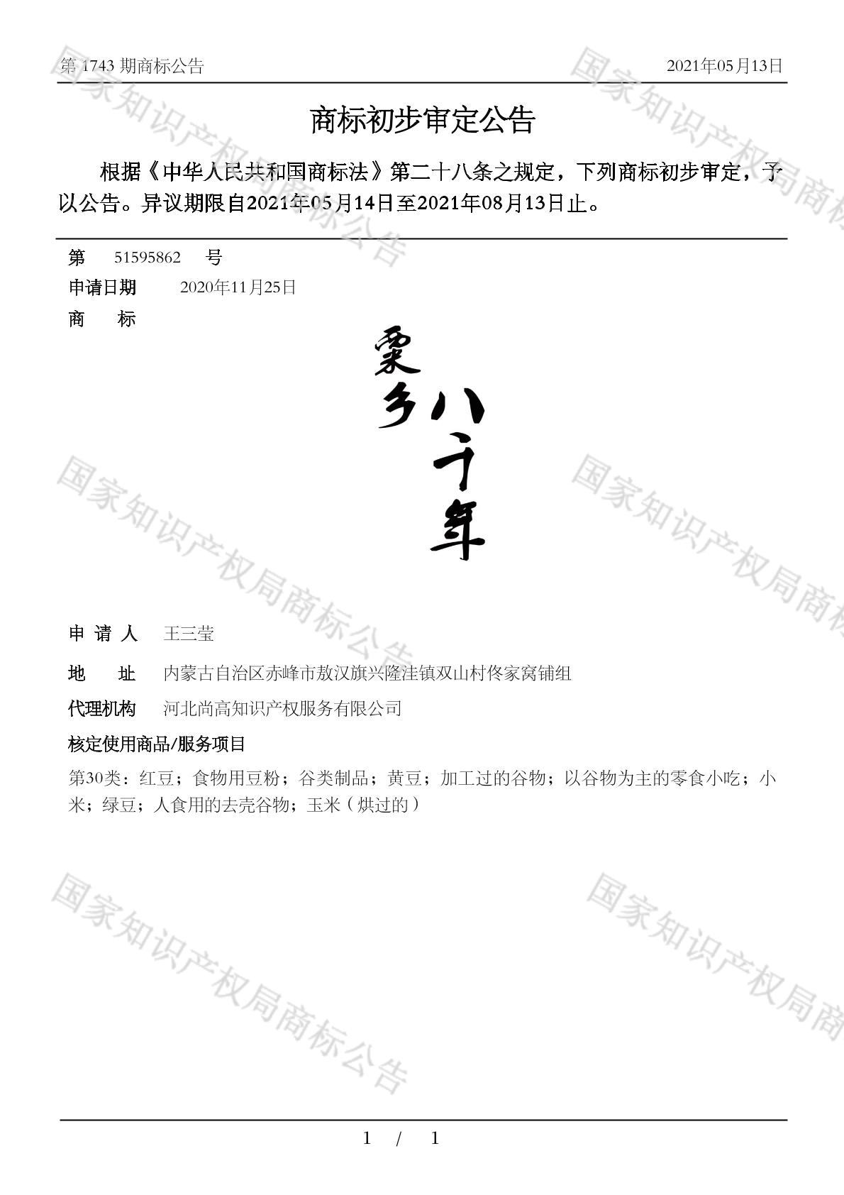 3006-以谷物为主的零食小吃;3008-人食用的去壳谷物;3008-加工过的谷物;3008-小米;3008-玉米(烘过的);3008-红豆;3008-绿豆;3008-谷类制品;3008-食物用豆粉;3008-黄豆;3010-以谷物为主的零食小吃 - 1743