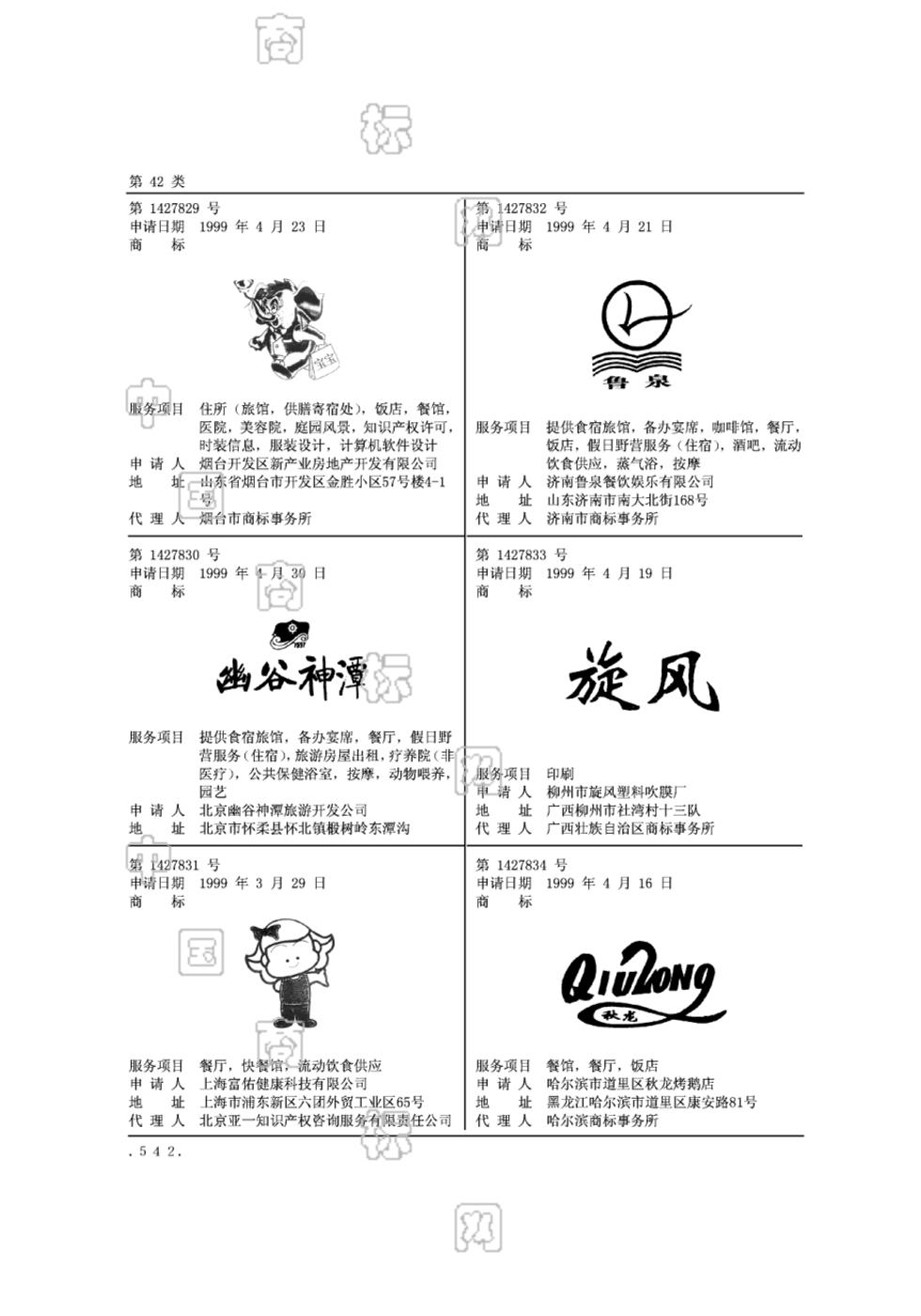 4201-住所(旅馆);4201-供膳寄;4201-餐馆;4201-饭店;4203-医院;4204-美容院;4206-庭园风景;4207-知识产权许可;4218-时装信息;4218-服装设计;4220-计算机软件设计 - 733