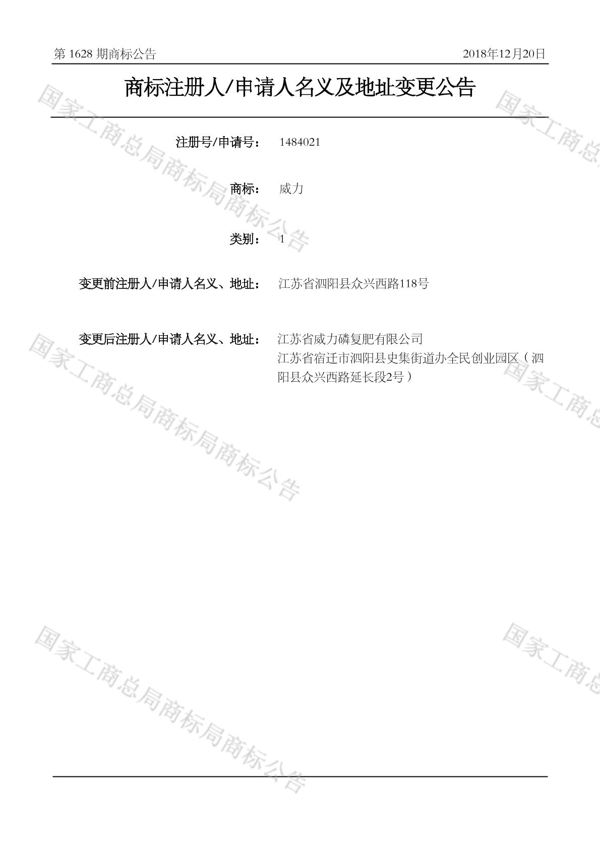 2018-10-22 变更商标申请人/注册人名义/地址 | 申请收文