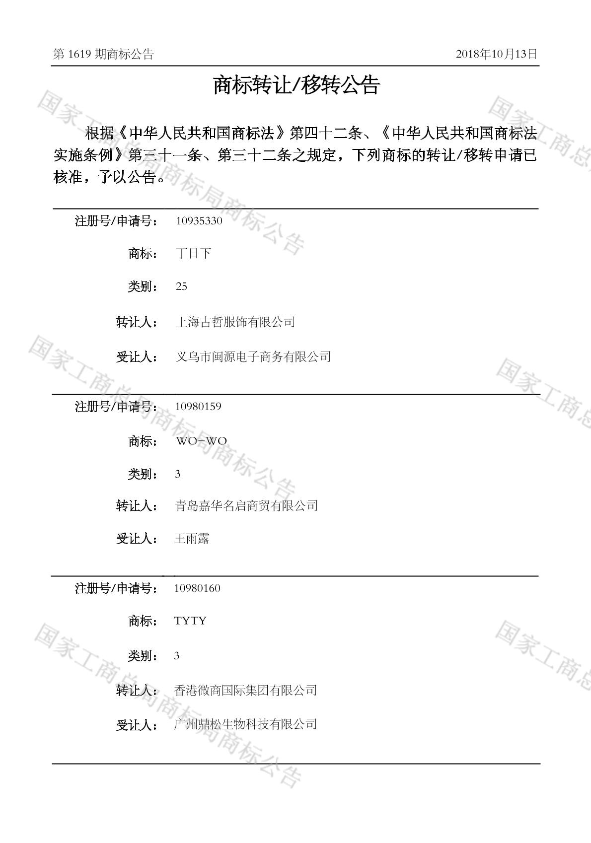 2018-10-31 商标转让 | 核准证明打印发送