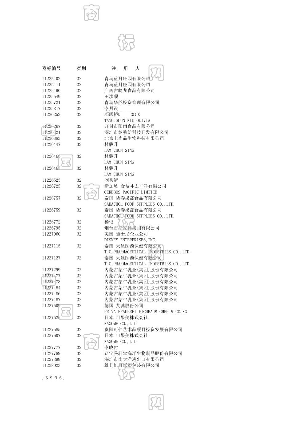 3201-啤酒;3202-含果汁无酒精饮料;3202-无酒精果汁饮料;3202-无酒精水果混合饮料;3202-无酒精饮料;3202-果昔;3202-果汁;3202-汽水;3202-瓶装水(饮料);3202-运动用饮料(无酒精饮料);3203-饮料制剂 - 1375