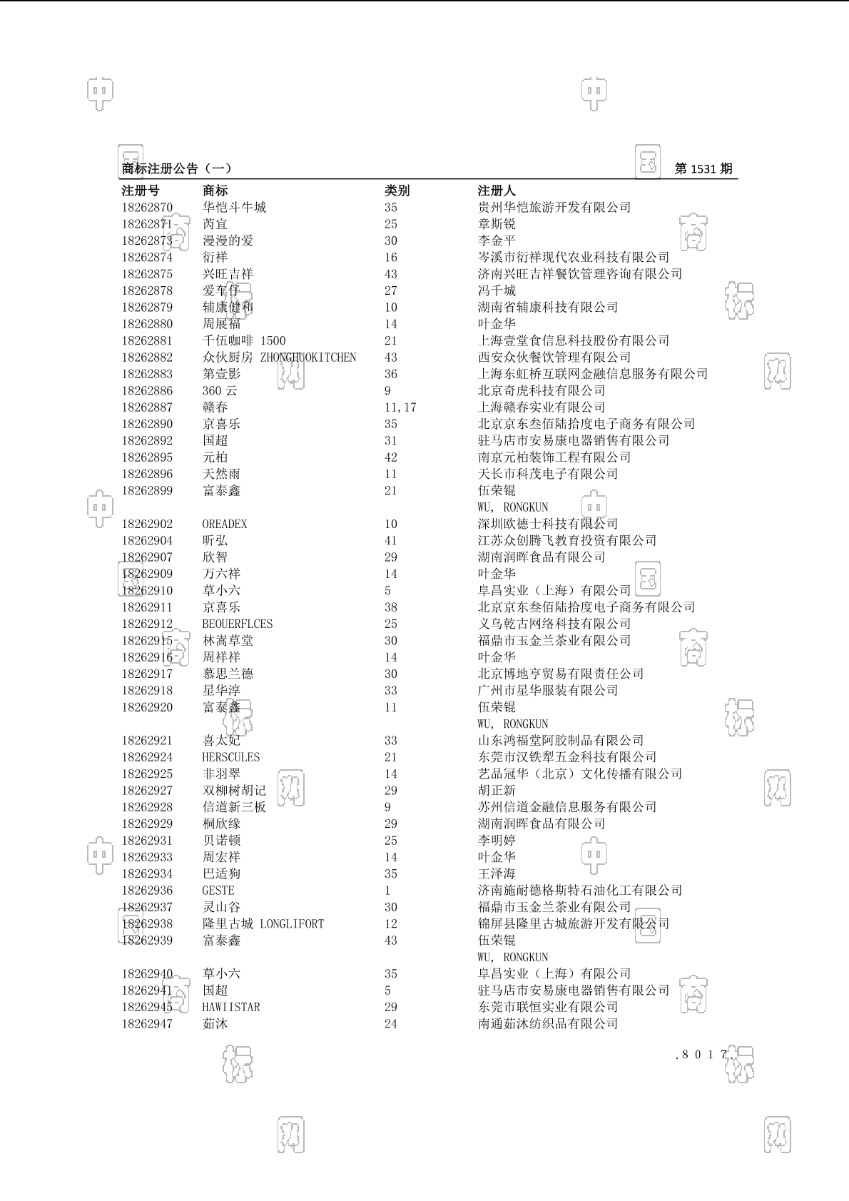 2017-01-19 商标注册申请 | 注册证发文