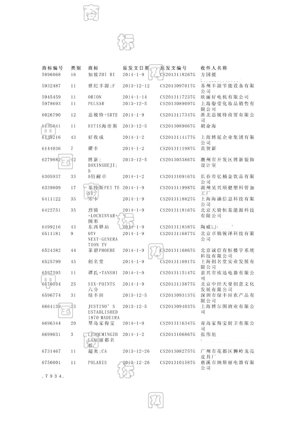 2014-01-06 撤销连续三年停止使用注册商标 | 打印受理通知