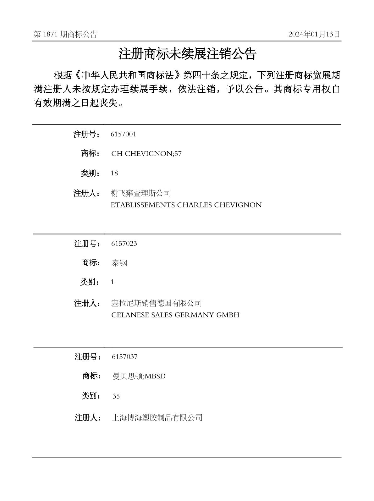 2024-01-15 期满未续展注销商标 | 排版未续展注销公告
