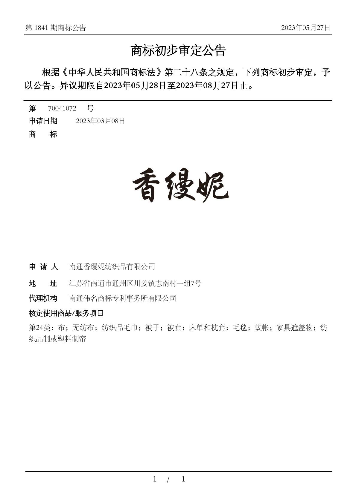 【香缦妮】商标详情