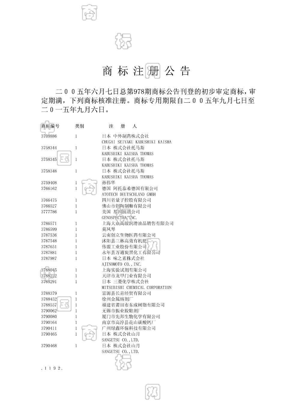 2005-09-27 商标注册申请 | 打印注册证