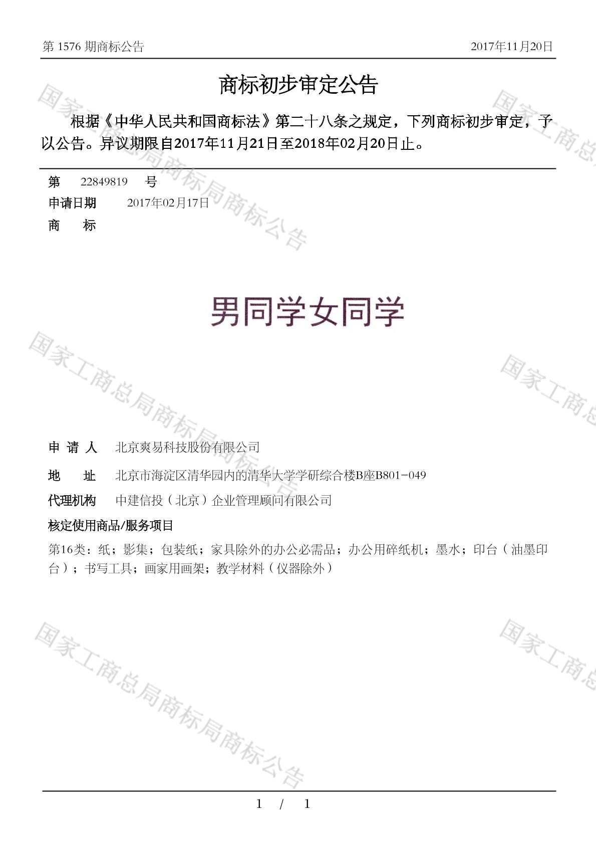 【男同学女同学】商标详情