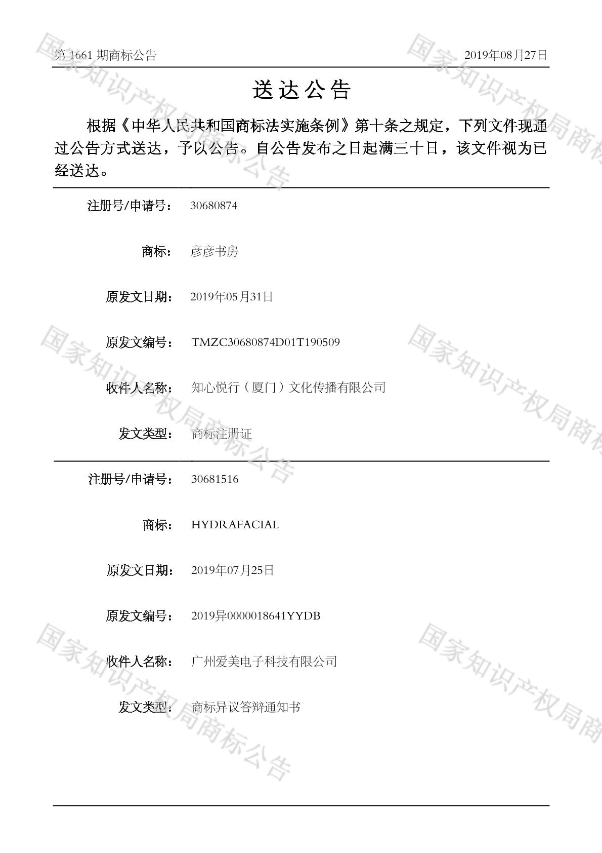 2019-08-28 商标注册申请 | 排版送达公告(商标注册证)