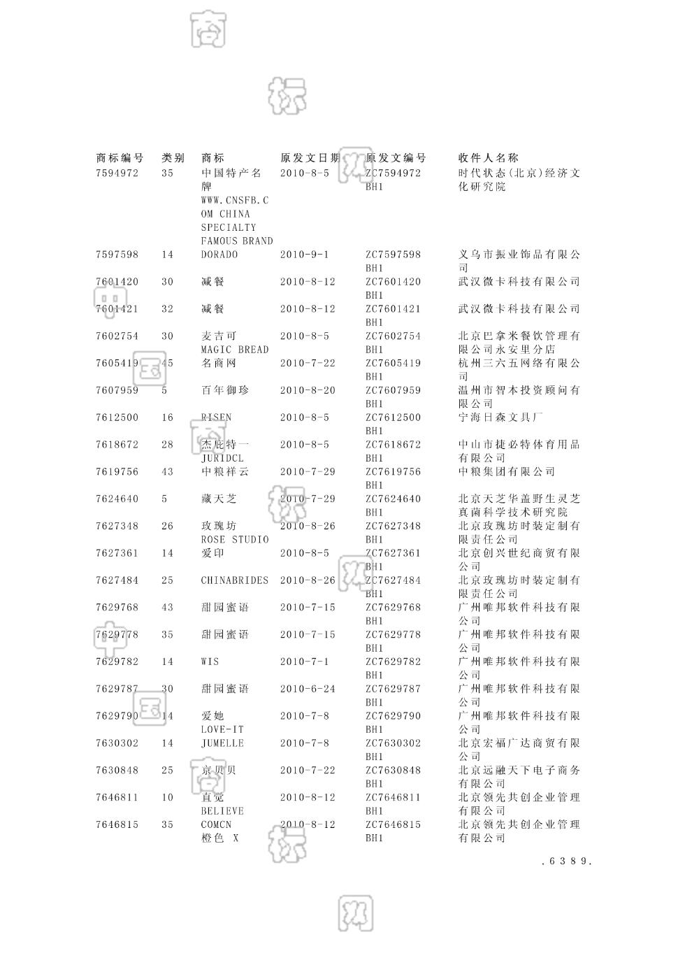 2010-07-08 商标注册申请 | 打印驳回通知