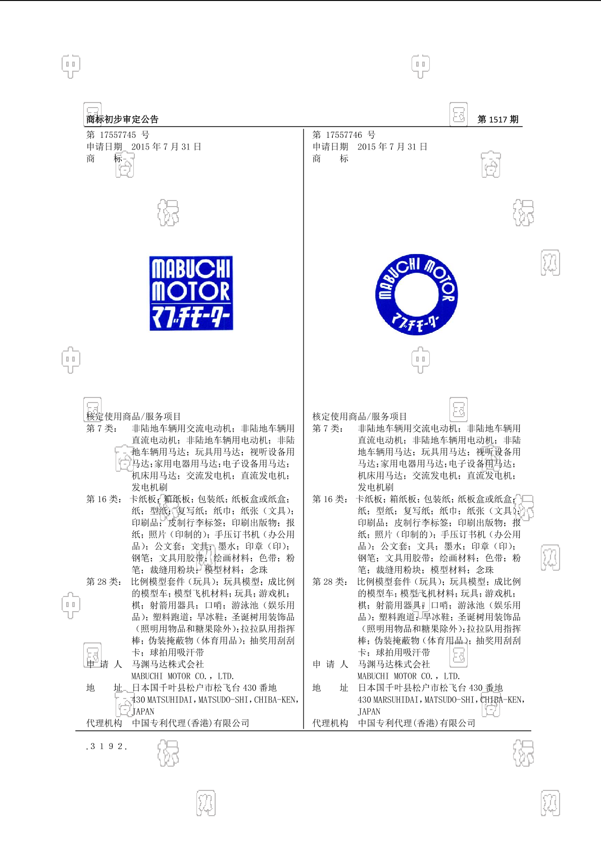 0748-交流发电机;0748-发电机刷;0748-家用电器用马达;0748-机床用马达;0748-玩具用马达;0748-电子设备用马达;0748-直流发电机;0748-视听设备用马达;0748-非陆地车辆用交流电动机;0748-非陆地车辆用电动机;0748-非陆地车辆用直流电动机;0748-非陆地车辆用马达 - 1517
