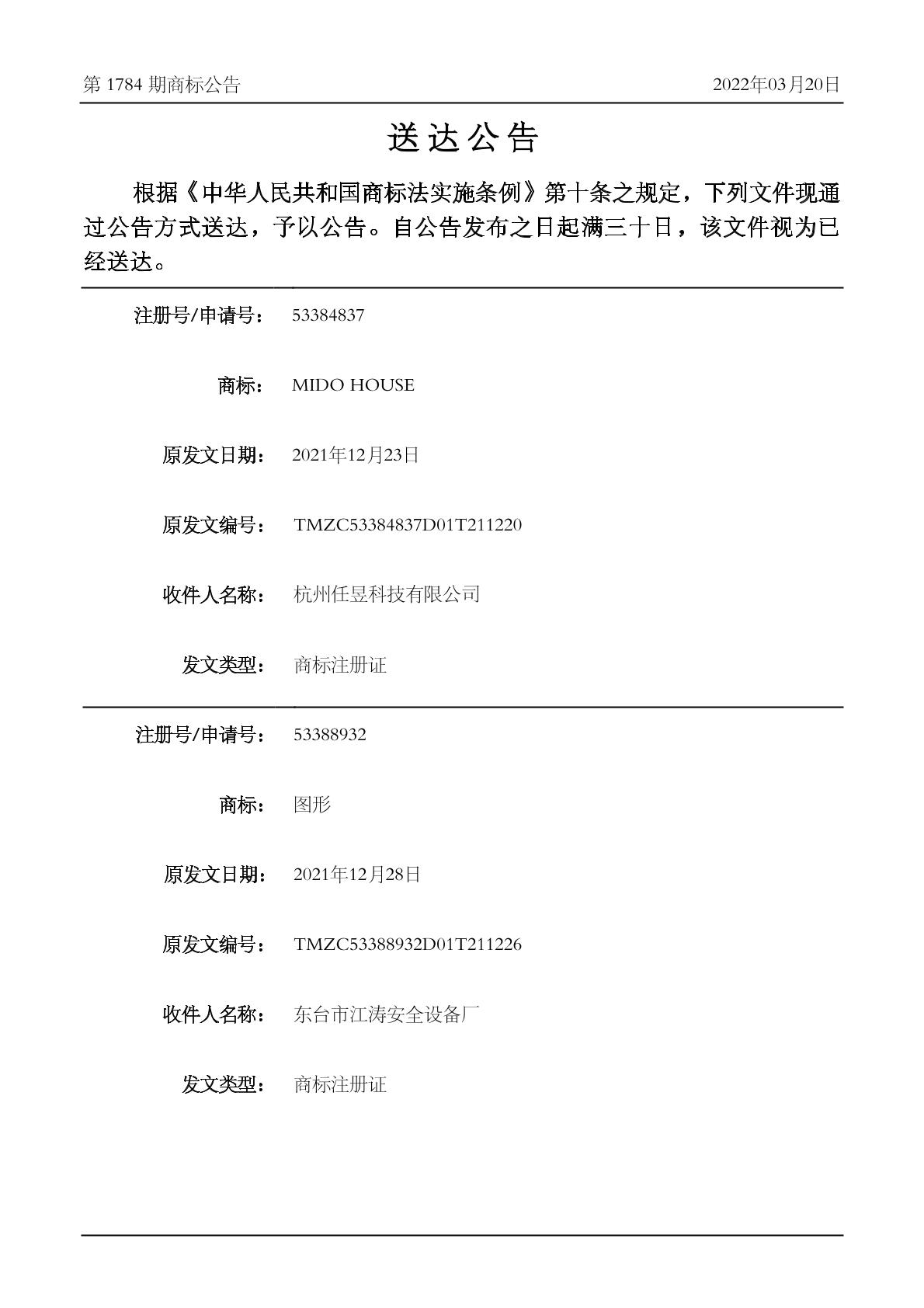 2022-03-22 商标注册申请 | 排版送达公告(商标注册证)