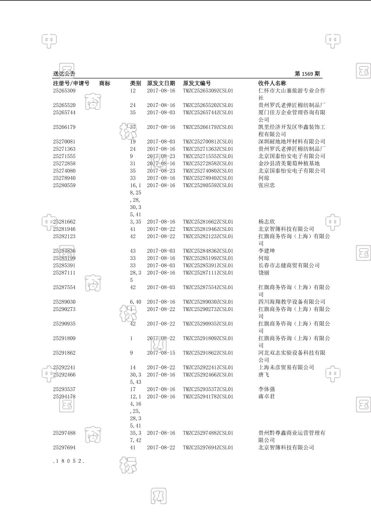 2017-10-11 商标注册申请 | 排版送达公告(商标注册申请受理通知书)