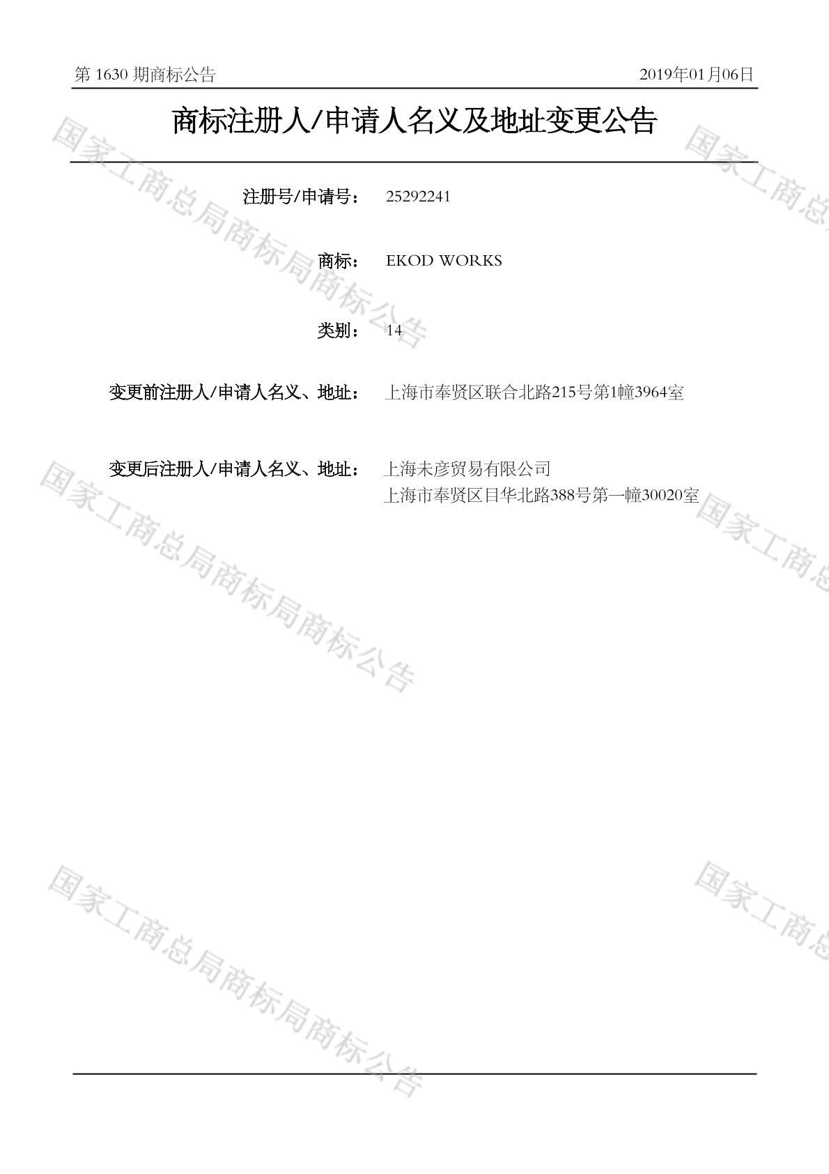 2018-10-19 变更商标申请人/注册人名义/地址 | 申请收文