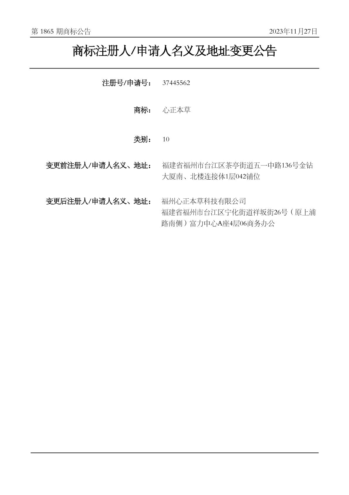 2023-11-22 变更商标申请人/注册人名义/地址 | 核准证明打印发送