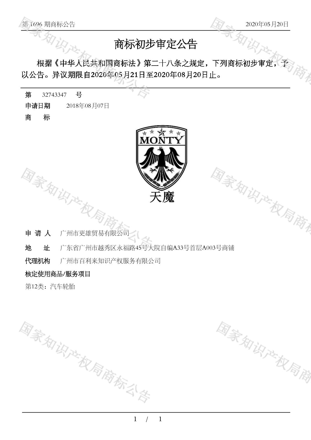 【天魔 MONTY】商标详情