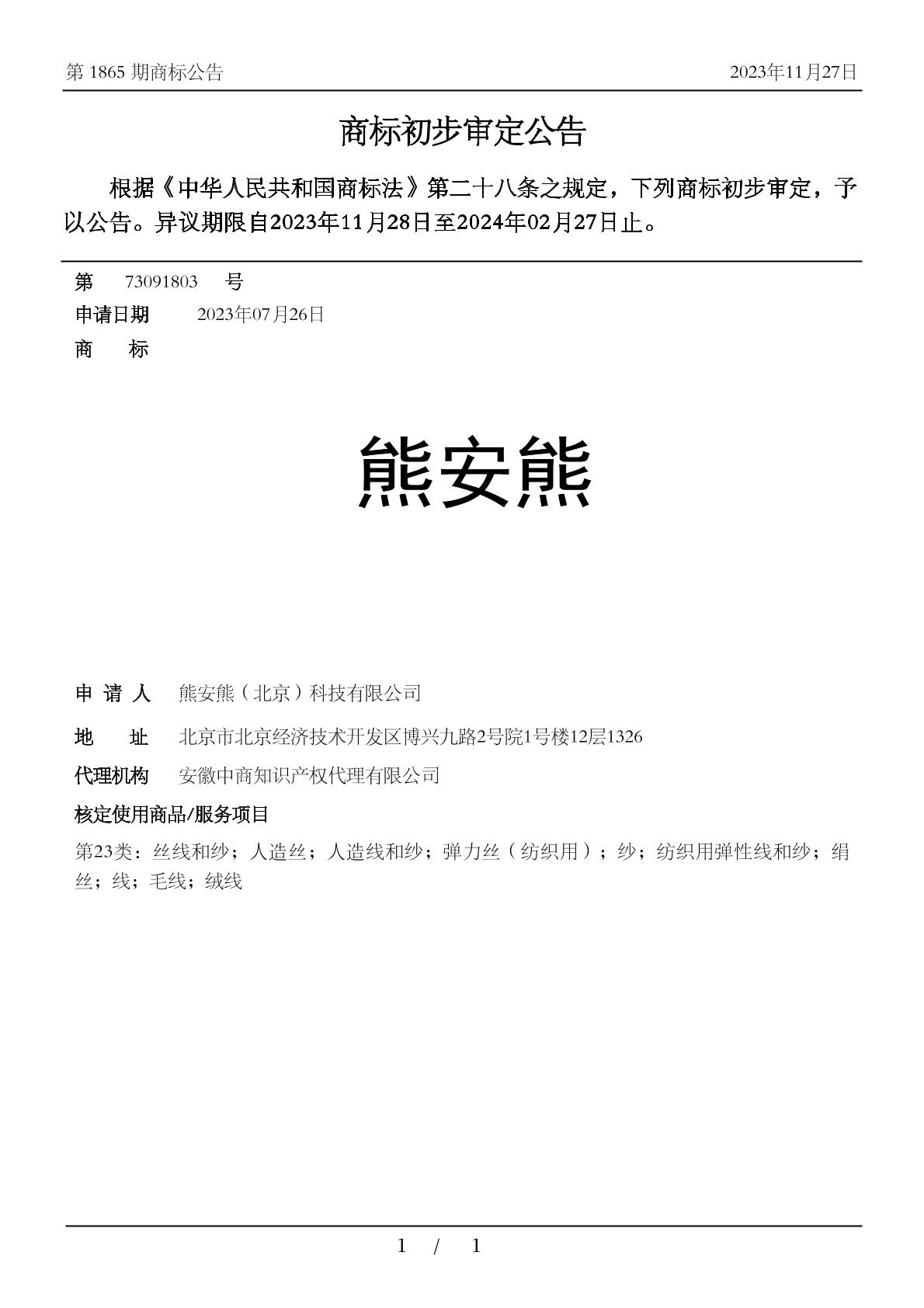 【熊安熊】商标详情