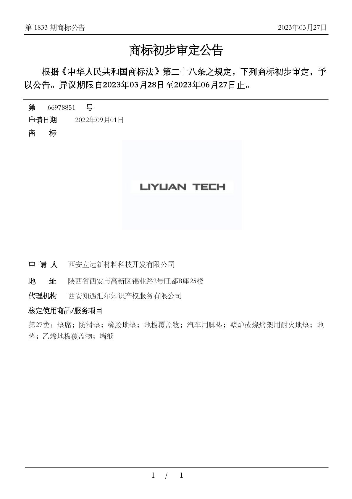2701-地毯;2702-垫席;2703-乙烯地板覆盖物;2703-地垫;2703-地板覆盖物;2703-壁炉或烧烤架用耐火地垫;2703-橡胶地垫;2703-汽车用脚垫;2703-防滑垫;2704-墙纸 - 1833