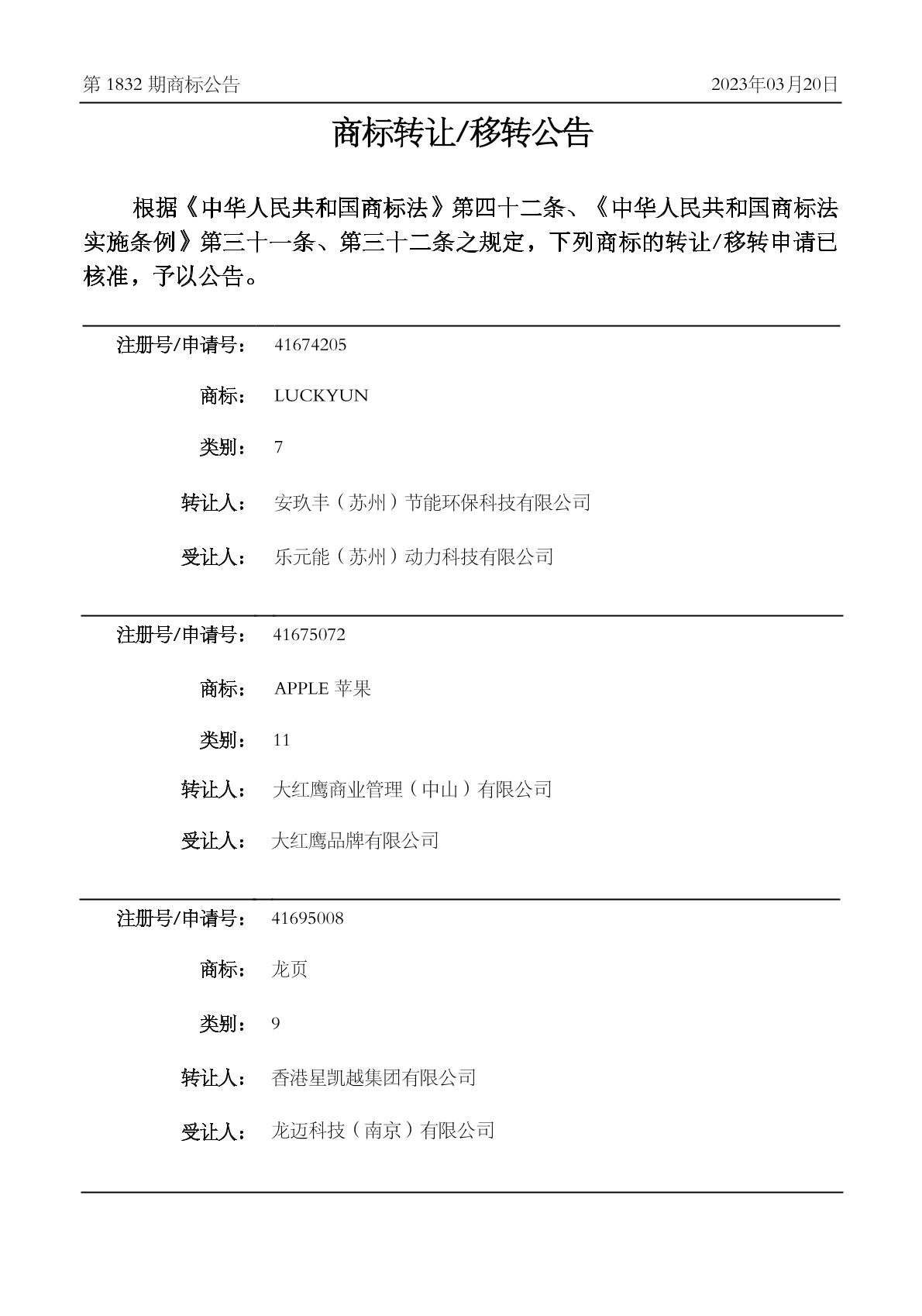2022-10-25 商标转让 | 申请收文