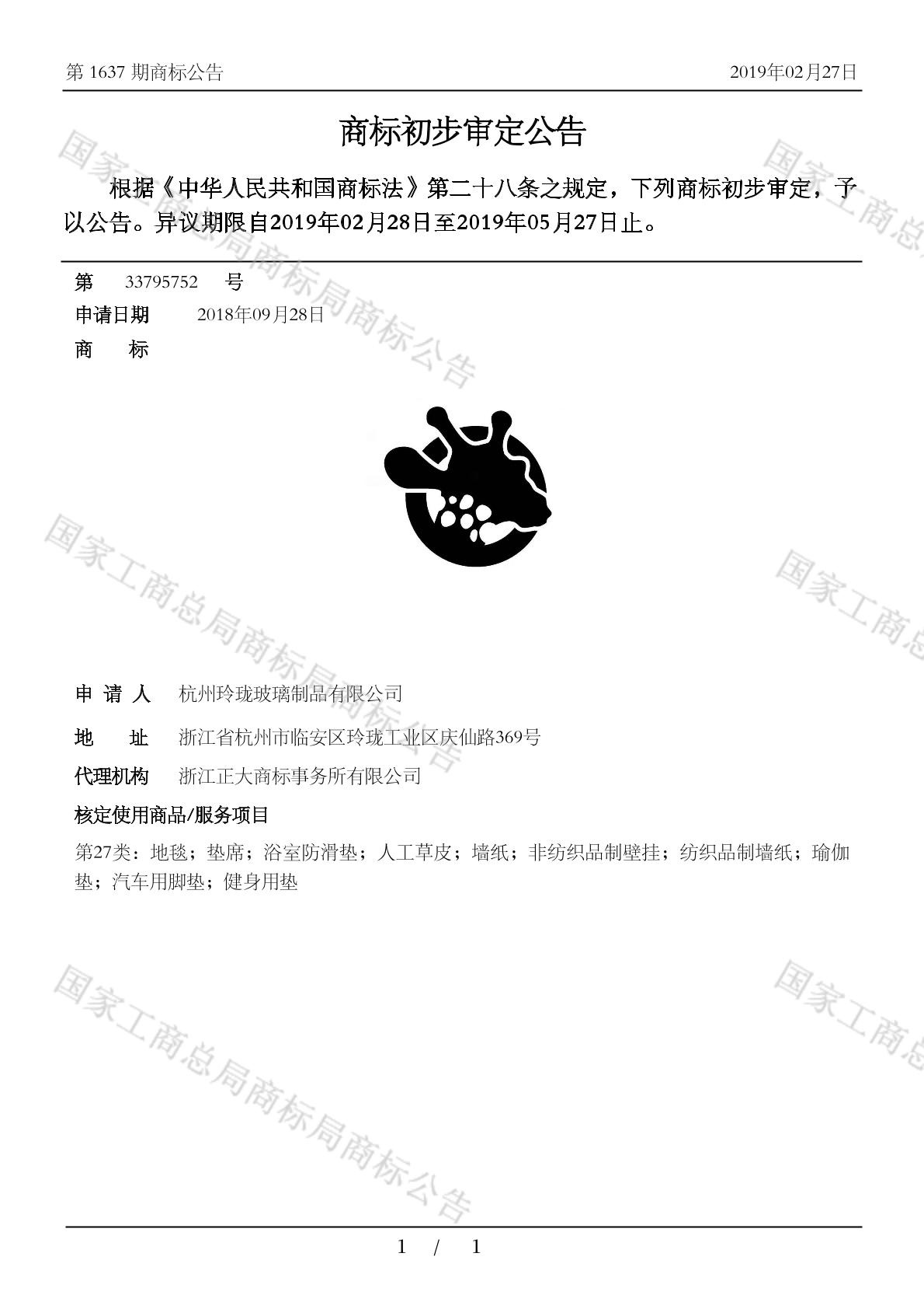 2701-地毯;2702-垫席;2703-人工草皮;2703-健身用垫;2703-汽车用脚垫;2703-浴室防滑垫;2703-瑜伽垫;2704-墙纸;2704-纺织品制墙纸;2704-非纺织品制壁挂 - 1637