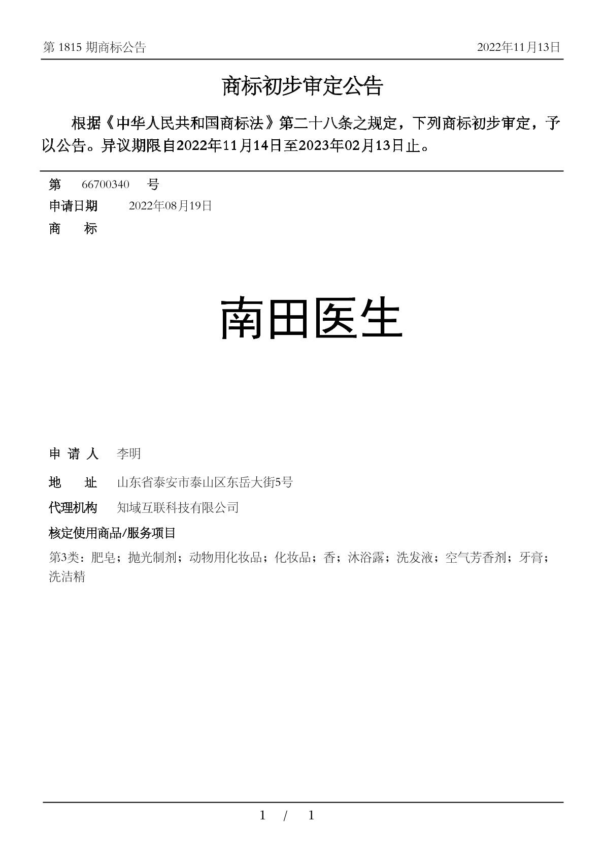 0301-沐浴露;0301-洗发液;0301-肥皂;0302-洗洁精;0303-抛光制剂;0306-化妆品;0307-牙膏;0308-香;0309-动物用化妆品;0310-空气芳香剂 - 1815