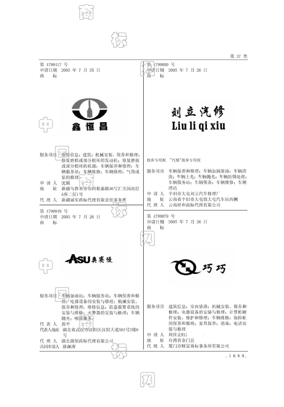 3701-建筑信息;3704-室内装璜;3706-机械安装、保养和修理;3706-电器设备的安装与修理;3706-计算机硬件安装、维护和修理;3707-车辆维修;3712-保险柜的保养和修理;3715-家具保养;3717-消毒;3718-电话安装与修理 - 1145