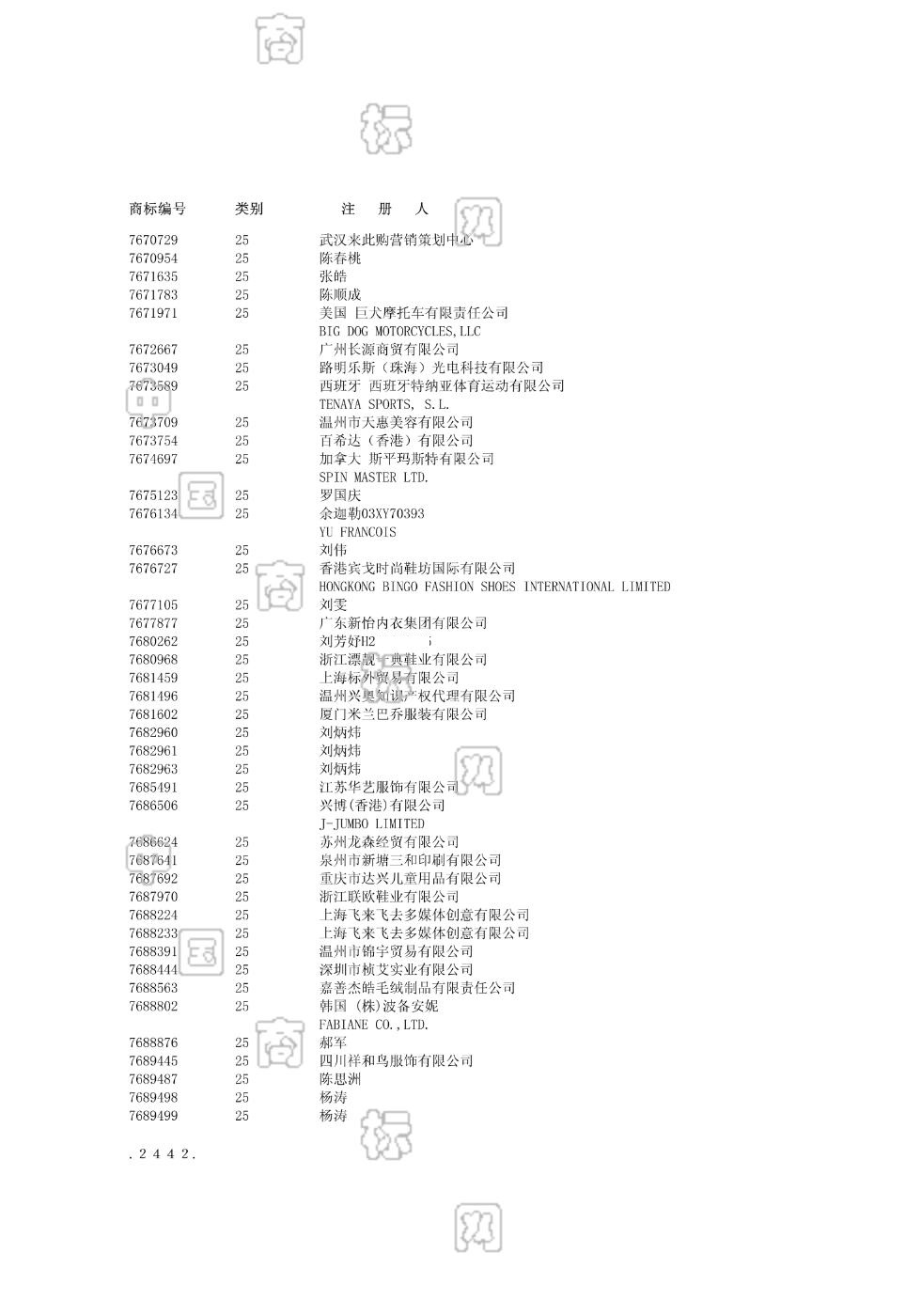 2501-防水服;2503-体操服;2503-化妆舞会上穿的服装;2504-防水服;2507-体操鞋;2513-修女头巾;2513-十字褡;2513-婚纱;2513-服装绶带;2513-浴帽;2513-睡眠用眼罩;2513-神父左臂上佩带的饰带 - 1240