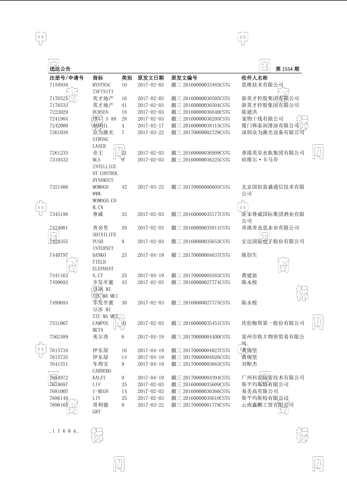 2017-11-04 撤销连续三年停止使用注册商标 | 撤销商标通知发文