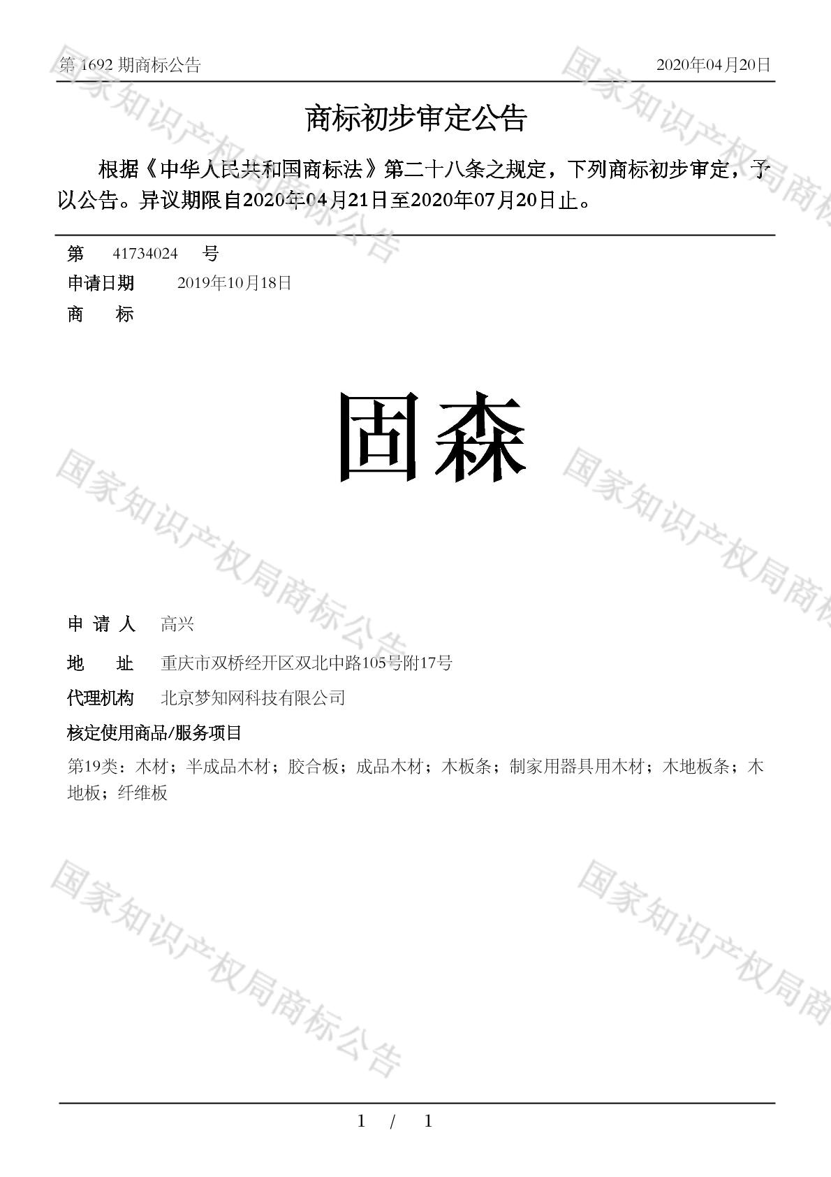 1901-制家用器具用木材;1901-半成品木材;1901-成品木材;1901-木地板;1901-木地板条;1901-木材;1901-木板条;1901-纤维板;1901-胶合板 - 1692
