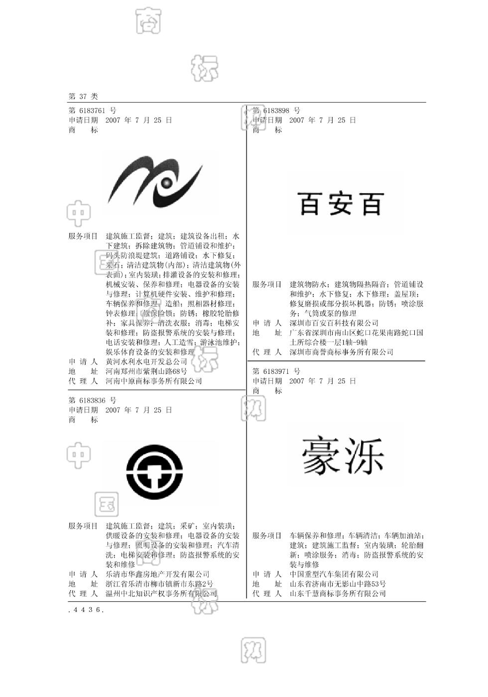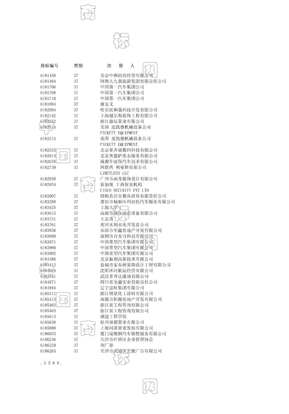 3701-建筑施工监督;3702-建筑;3704-室内装璜;3707-车辆保养和修理;3707-车辆加油站;3707-车辆清洁;3713-喷涂服务;3714-轮胎翻新;3717-消毒;3718-防盗报警系统的安装与维修 - 1196