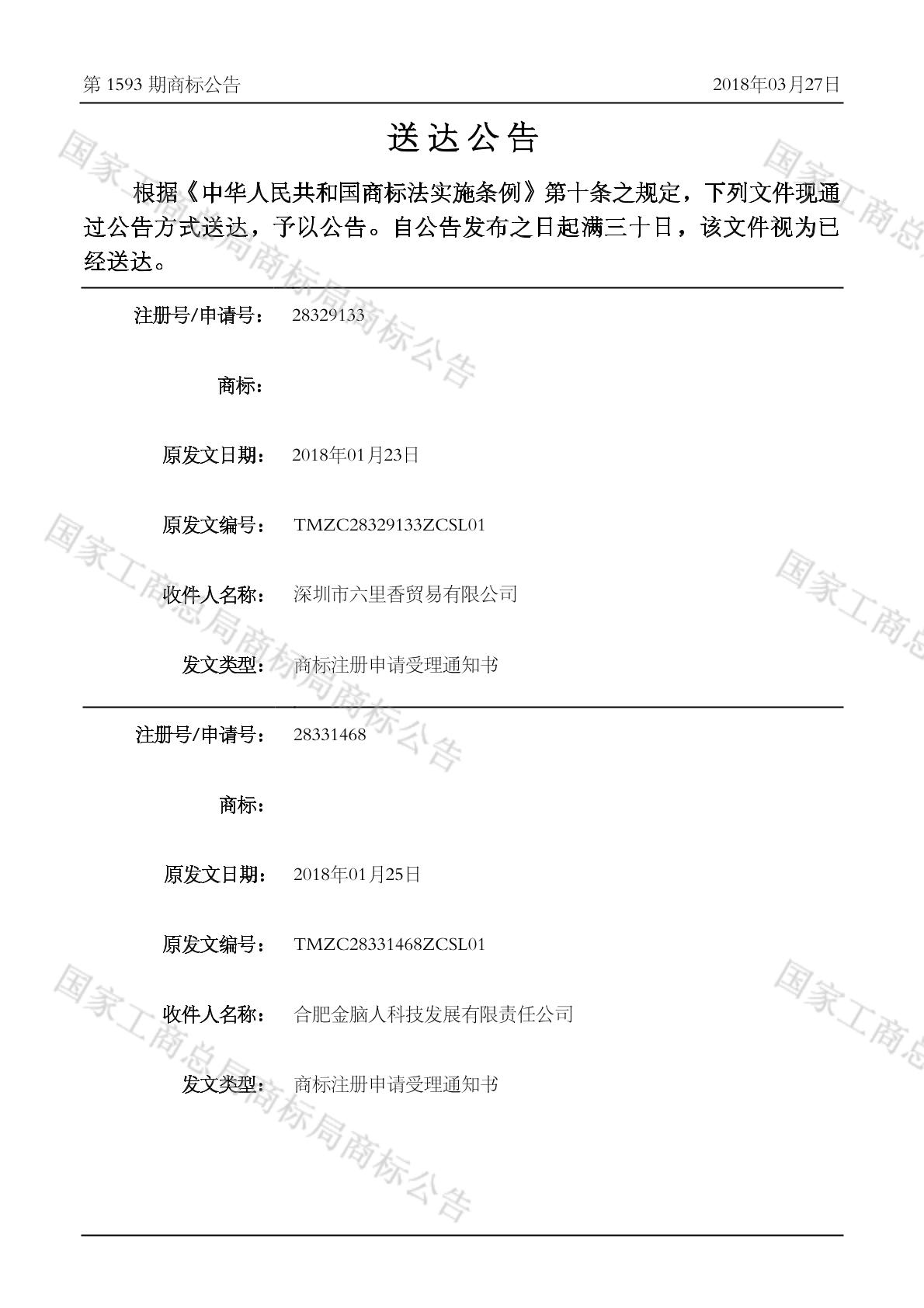 2018-04-05 商标注册申请 | 排版送达公告(商标注册申请受理通知书)