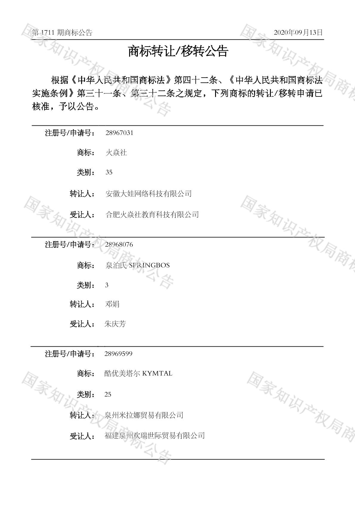 2020-09-14 商标转让 | 核准证明打印发送