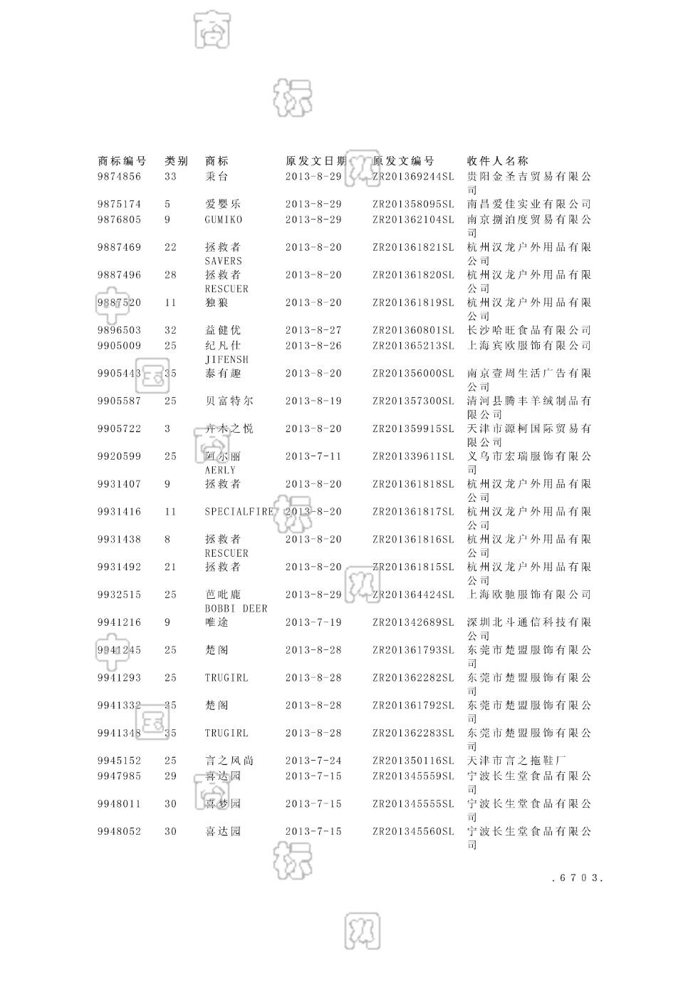 2013-07-22 商标转让 | 申请收文