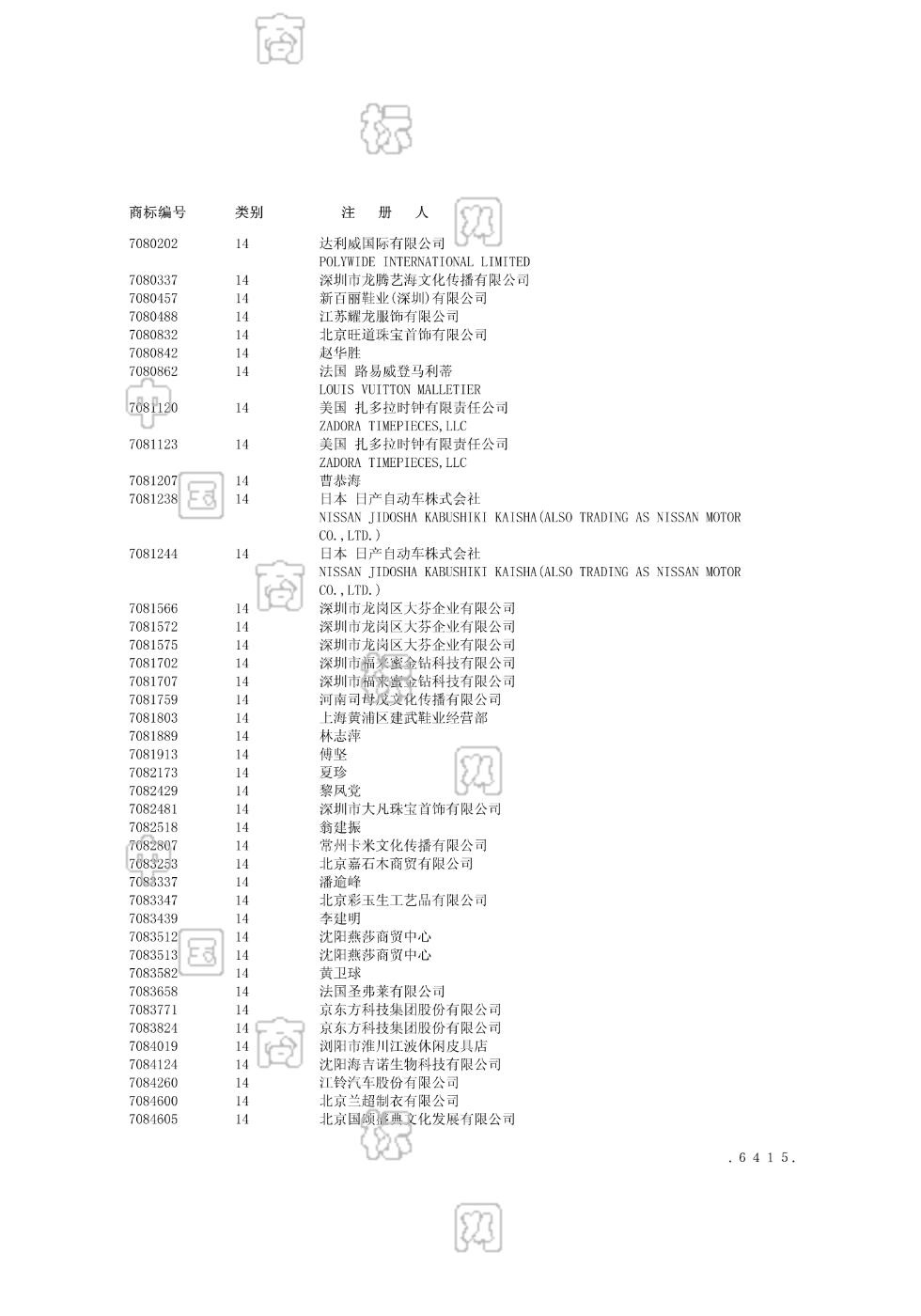 1401-贵重金属锭;1403-宝石;1403-小饰物(首饰);1404-手表;1404-手表带;1404-电子万年台历;1404-电子钟表;1404-表盒(礼品);1404-计时器(手表);1404-钟表机件 - 1209