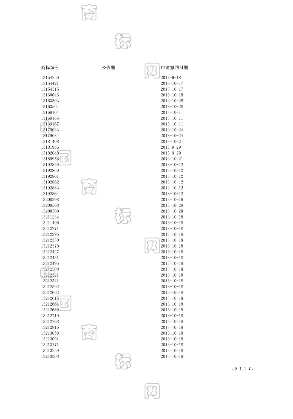商标注册申请撤回公告 2014-01-06 第1390期 查看公告