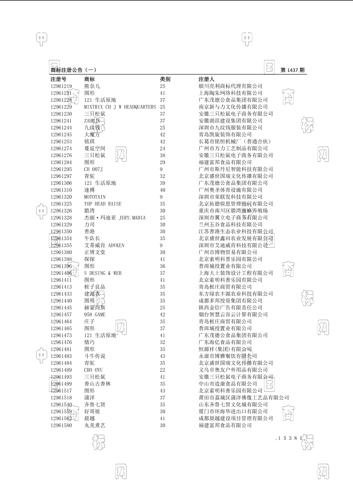 2015-01-01 商标注册申请 | 商标注册申请注册公告排版完成