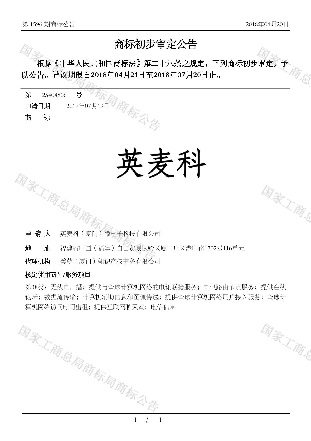 【英麦科】商标详情