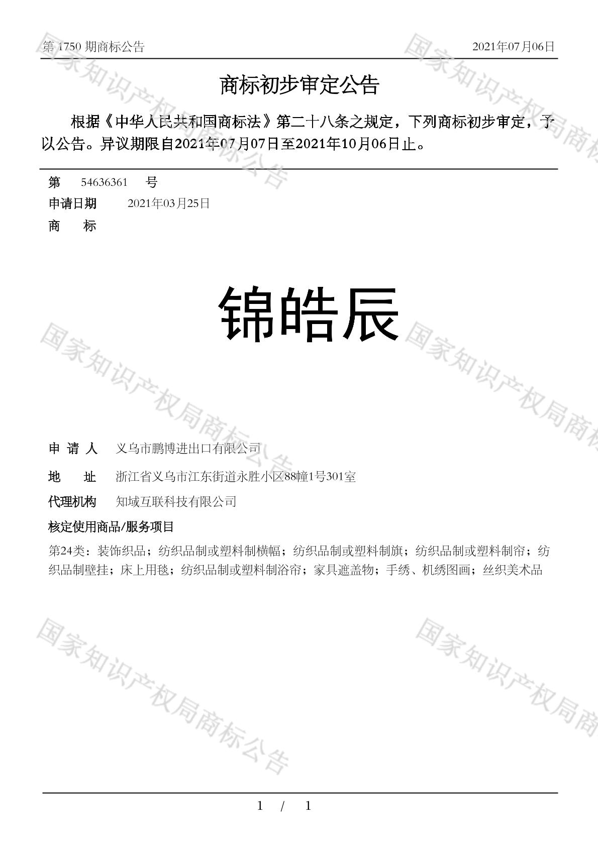 2401-装饰织品;2403-丝织美术品;2403-手绣、机绣图画;2403-纺织品制壁挂;2406-床上用毯;2407-家具遮盖物;2407-纺织品制或塑料制帘;2407-纺织品制或塑料制浴帘;2410-纺织品制或塑料制旗;2410-纺织品制或塑料制横幅 - 1750